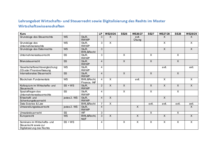 Ergänzende Angebote außerhalb des Master-Profilbereichs Steuern und Recht