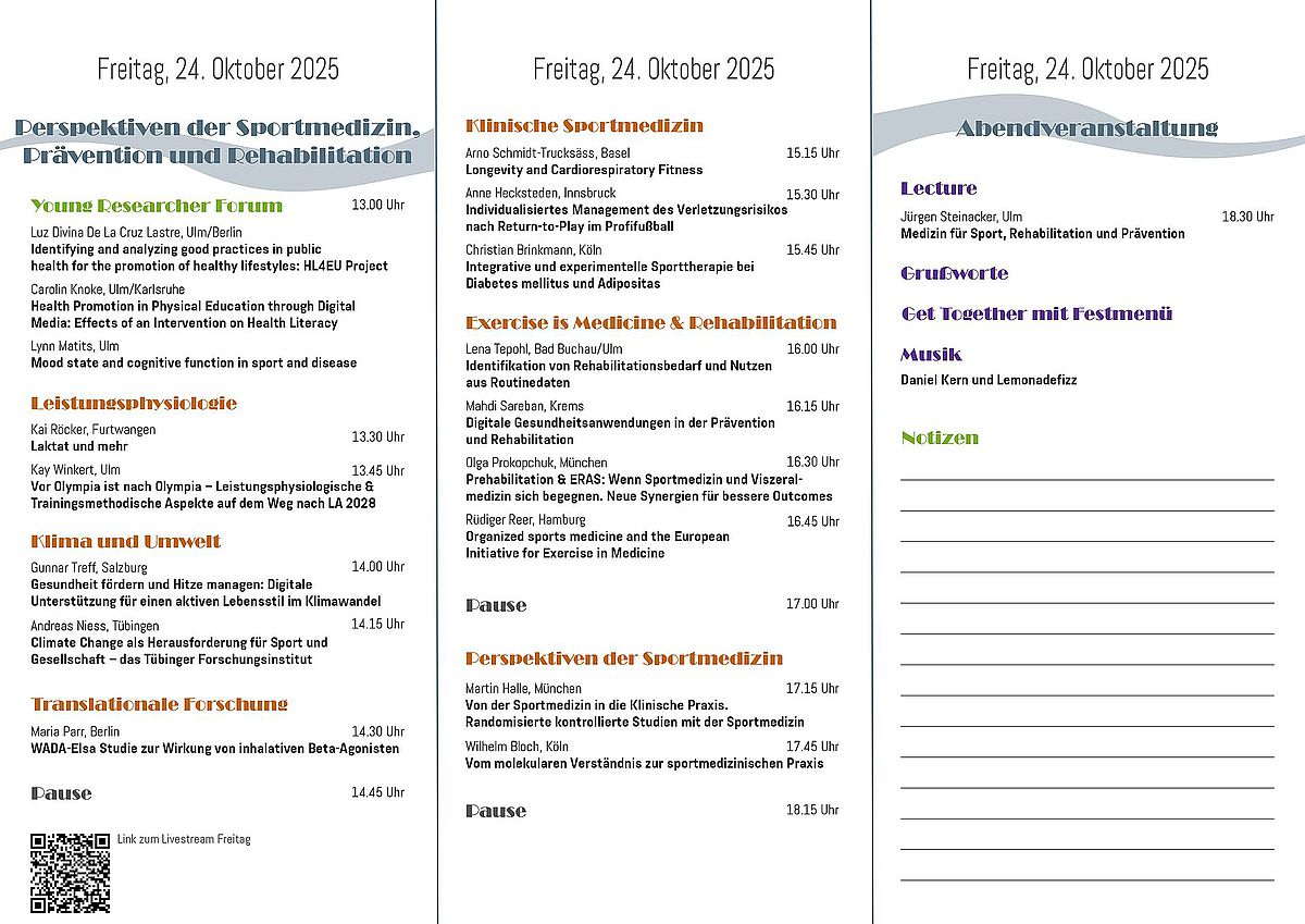 Unterstützt wird die Tagung vom German Journal of Sports Medicine und der European Initiative for Exercise in Medicine.