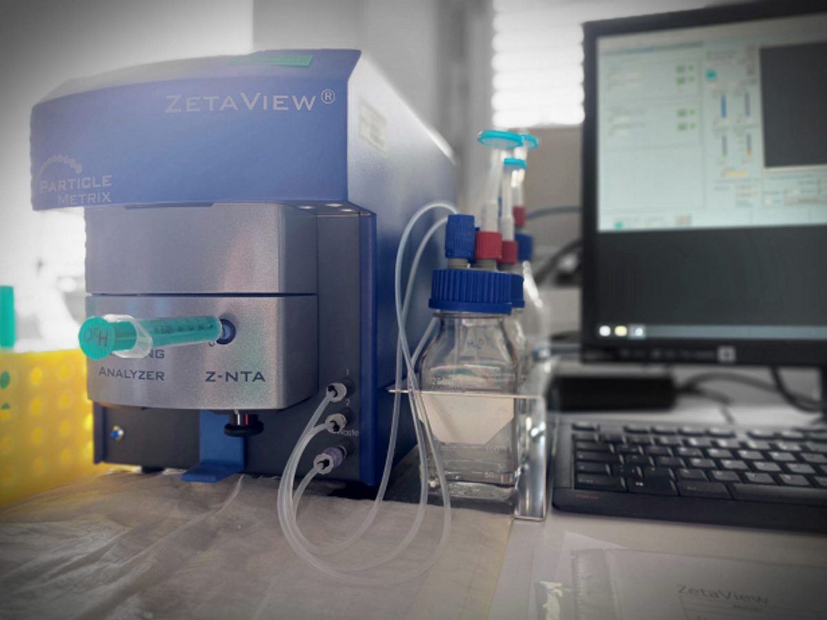 Des Weiteren bieten wir die Isolierung von Exosomen und deren Analyse mittels ZetaView an. Mit diesem System können Exosome individuell gemessen werden und Messungen in Videoformat gespeichert werden. Das Gerät besteht aus einer Zelleinheit, einem Laser (488 nm), einem Mikroskop und einer Videokamera.