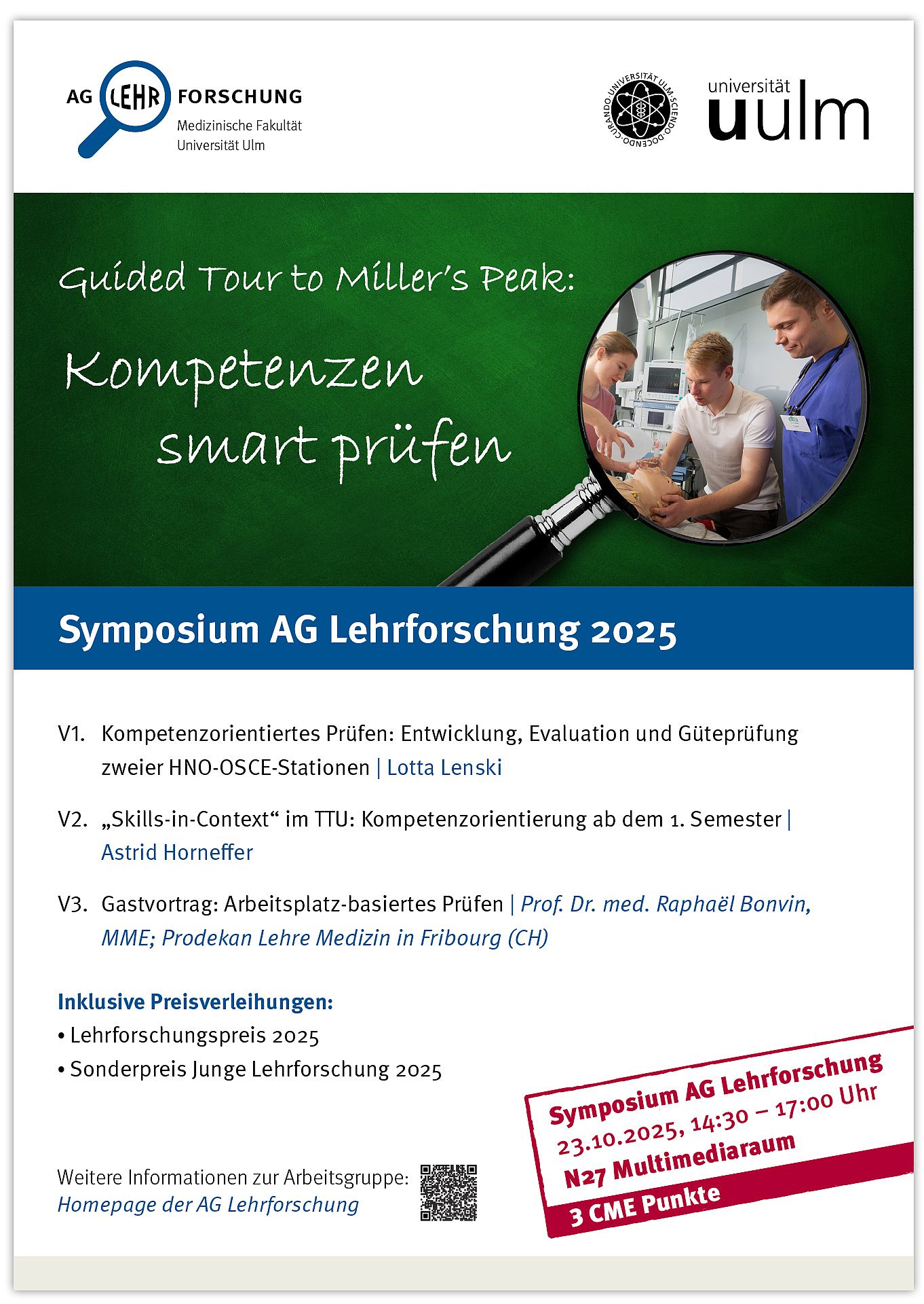 Die Medizinische Fakultät der Universität Ulm würdigt durch die Verleihung des Sonderpreises aktuelle und innovative Lehrforschungsprojekte junger Lehrforschender und unterstützt die Verbreitung dieser qualitativ hochwertigen Beiträge im Bereich der Lehrforschung.