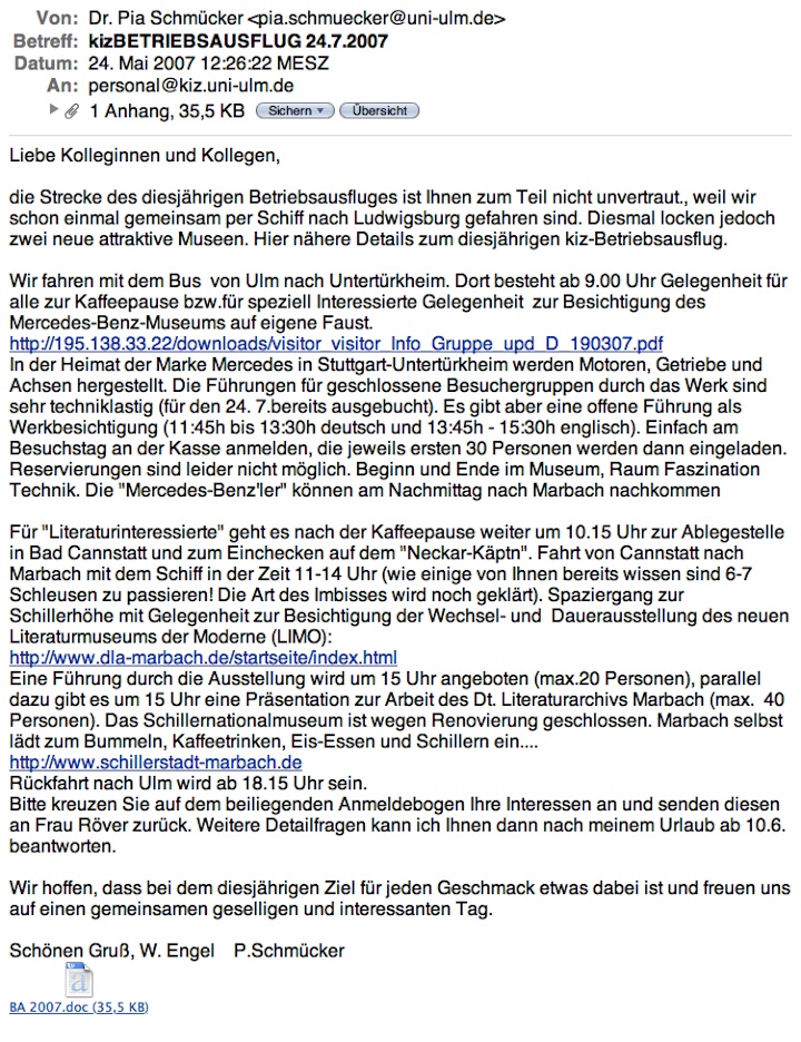 Betriebsausflug 2007 ::: Marbach am Neckar