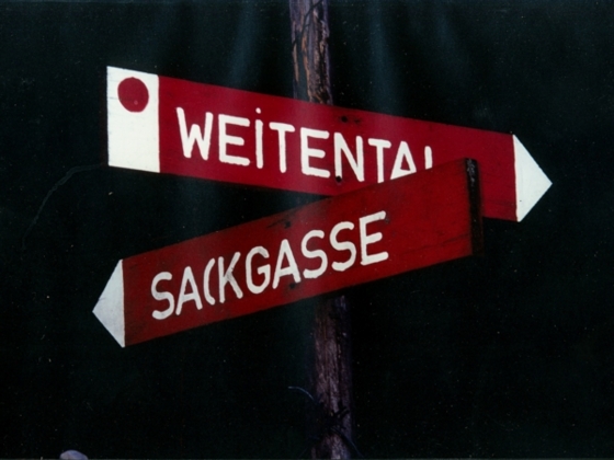 Wer würde hier - im wirklich hintersten Eck im Hintertuxer Tal in Österreich - bei der angebotenen Wege-Wahl zögern?