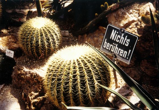 Das Schild „Nichts berühren“ alleine ist natürlich gar nicht komisch. Aber im Kakteenhaus im Münchner Botanischen Garten „stachelt“ es zum Nachdenken an.