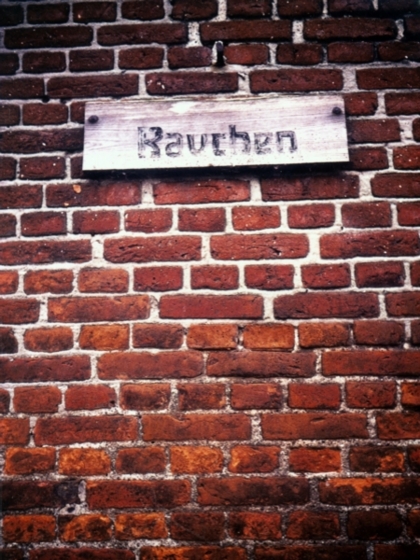 Auf diesem Gutshof an der Ostseeküste ist – man erkennt es an der helleren Mauer unterhalb der Holztafel – das Rauchen jetzt wohl wieder erlaubt.
