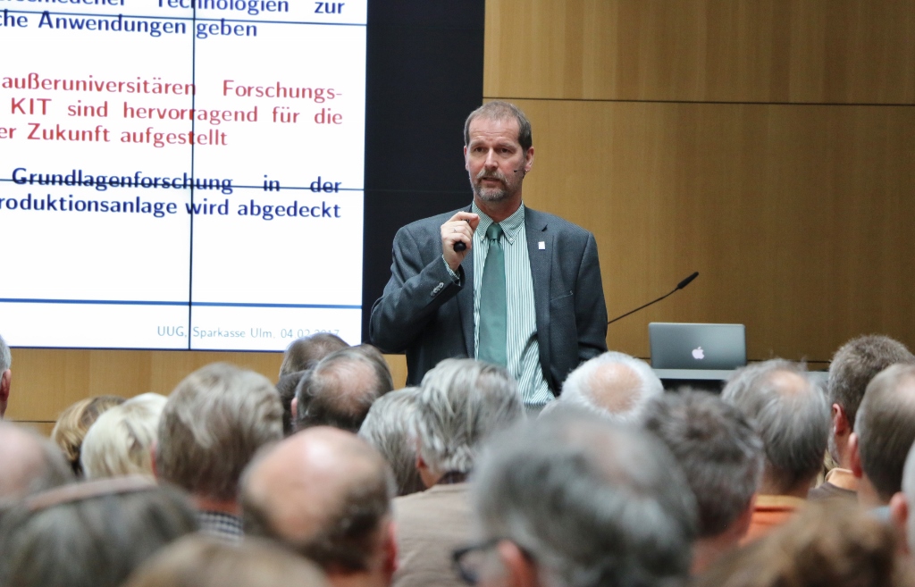 Groß, der auch am Helmholtz-Institut für Elektrochemische Energiespeicherung (HIU) forscht, sprach dort über die Chancen und Herausforderungen bei der Entwicklung neuartiger Batteriesysteme. Und stieß trotz des technisch durchaus anspruchsvollen Themas auf reges Interesse beim Publikum. Die neue "gute Stube" der Sparkasse Ulm war so gut wie voll besetzt. Das Kreditinstitut unterstützt die von UUG-Geschäftsführer Dietrich Engmann federführend koordinierten Vorträge seit vielen Jahren.