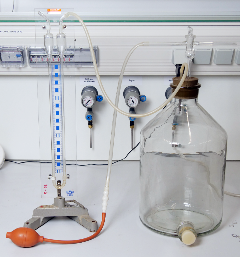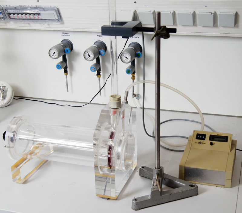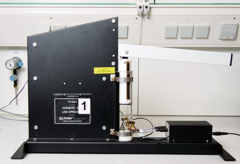 Es stehen zwei unterschiedliche Versuchsaufbauten zur Verfügung, die nach demselben Prinzip funktionieren: In einem Rohr, das mit einem größeren Gasvolumen in Verbindung steht, oszilliert eine Kugel bzw. ein Zylinder. Aus der Frequenz, dem Gasvolumen und weiteren Versuchsparametern kann der Adiabatenexponent berechnet werden. Ein- und mehratomige Gase stehen für die Versuchsdurchführung zur Verfügung.