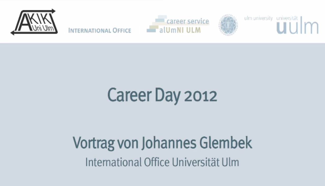 Johannes Glembek (International Office): "Aufenthaltsrecht und Arbeitserlaubnis"Eine Aufzeichnung vom Career Day 2012