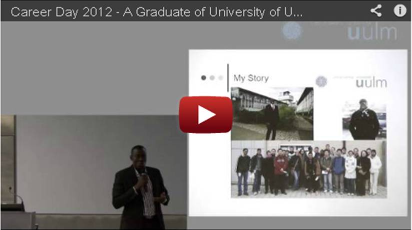Innocent Keno AkiA Graduate of University of Ulm reports Eine Aufzeichnung vom Career Day 2012(opens in youtube)