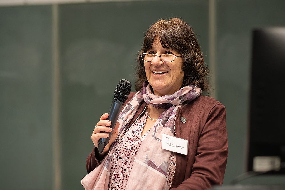 Die Vizepräsidentin für Lehre, Prof. Olga Pollatos, begrüßt die Gäste zur Vergabefeier der Deutschlandstipendien (Foto: Elvira Eberhardt/Uni Ulm)