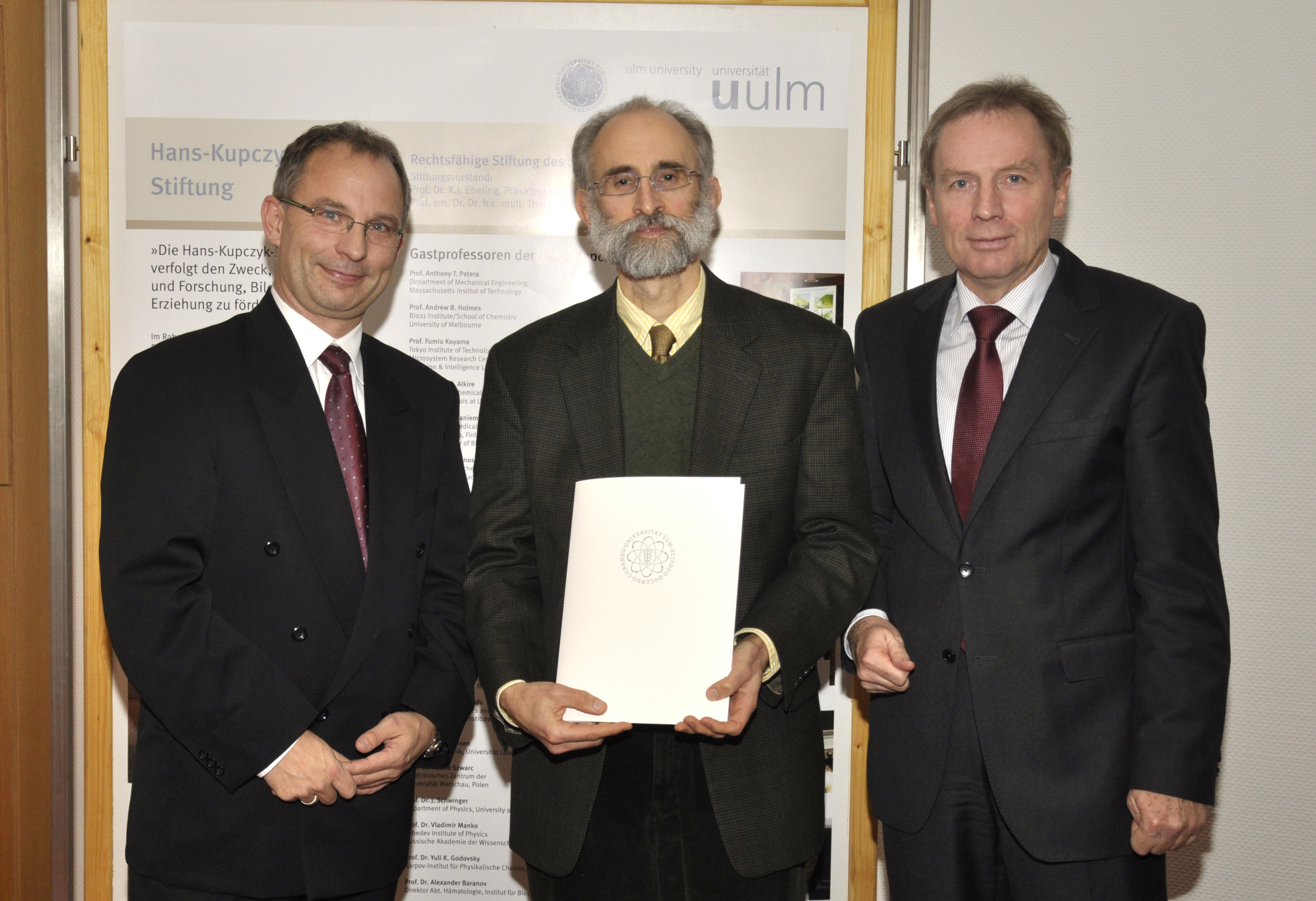Die Gastprofessur der Hans-Kupczyk-Stiftung wurde jetzt zum 24. Mal verliehen. Die Stiftung des inzwischen verstorbene Verlegers und Druckereibesitzers Kupczyk unterstützt Professoren der Universität Ulm dabei, international renommierte Wissenschaftler für eine kurzzeitige Gastprofessur zu gewinnen.