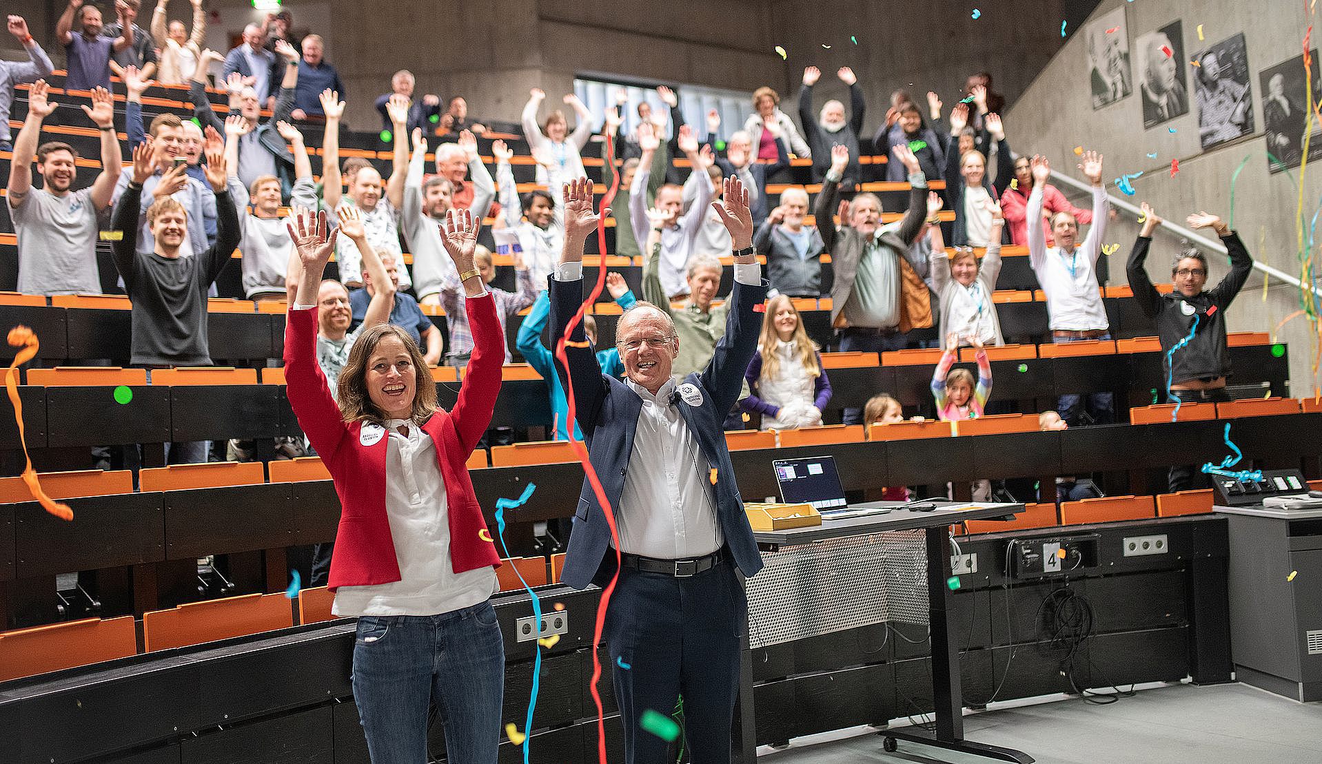 Im Auftrag der Deutschen Physikalischen Gesellschaft (DPG) reist der Physiker Prof. Claus Lämmerzahl von Bremen nach Ulm. Im Gepäck hat er eine Plakette der DPG-Initiative "100 Quantenorte", mit der die Universität Ulm und der DLR-Standort Ulm gemeinsam als erster Quantenort in Deutschland ausgezeichnet werden. Sichtbar gemacht werden damit Orte, Gebäude und Institute, die in besonderer Weise der Quantenphysik verbunden sind. Gefeiert wurde die Anbringung der Plakette in kleinem Kreis im Forum der Uni zusammen mit Forschenden aus dem Deutschen Zentrum für Luft- und Raumfahrt.