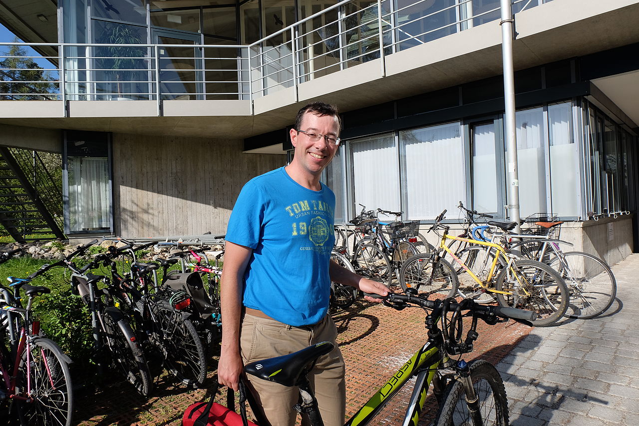 „Mein Weg zur Uni dauert mit dem Rad rund 5 bis 7 Minuten. Der Weg führt zwar nur bergauf, aber das ist -neben Laufen- mein tägliches Training."